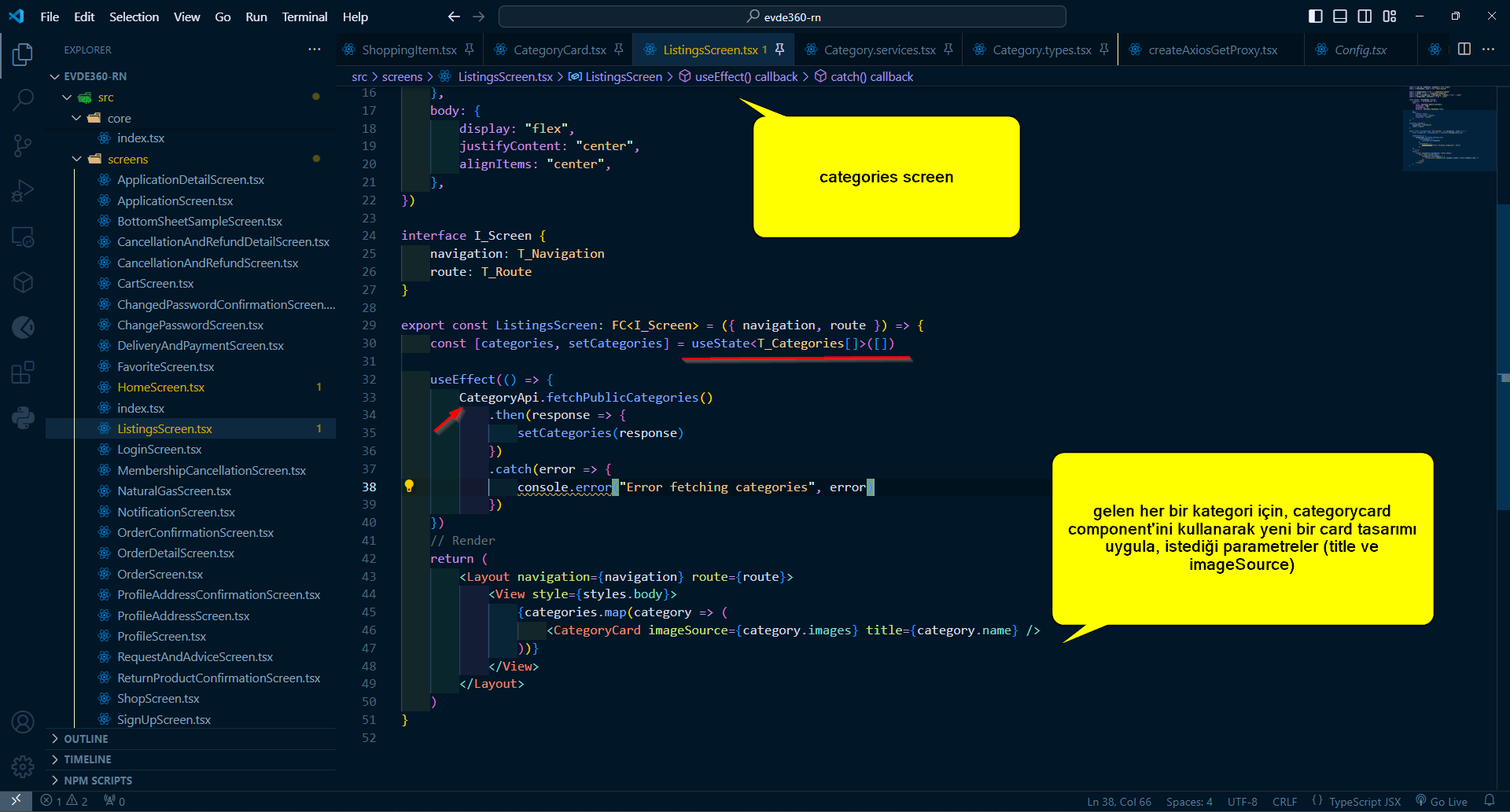 yine aynı şekilde ilgili sayfanın API'sini kontrol eden controller'daki ilgili get ve post